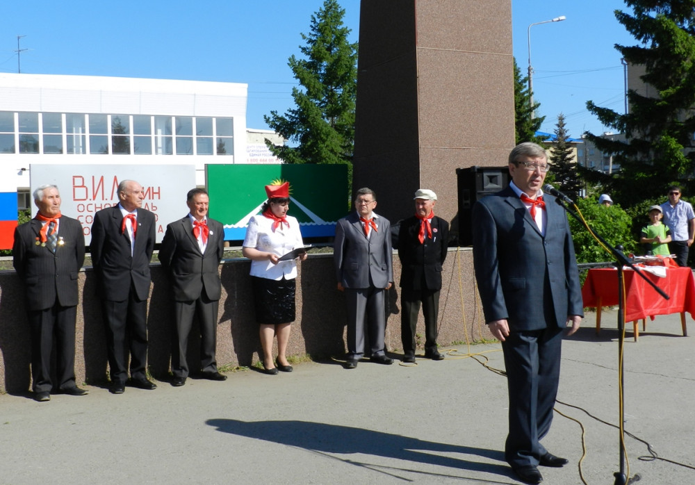 В день юбилея на центральной пощади районного центра собрались учащиеся, руководители школ и ветераны пионерского движения.