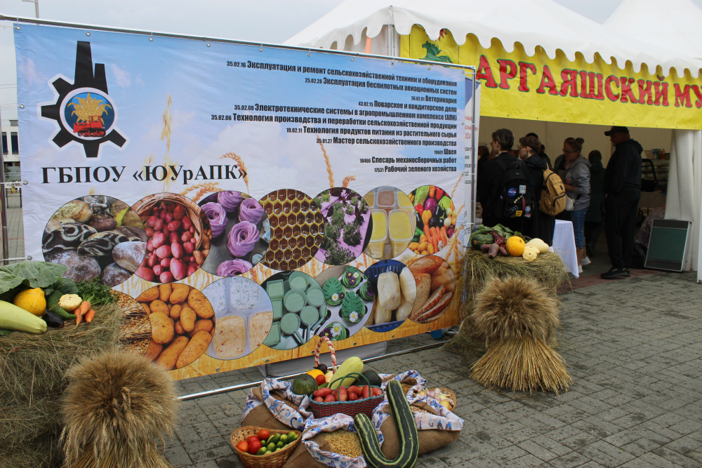 Губернатор Алексей Текслер посетил экспозицию Аргаяшского района, где оценил местную продукцию. Директор «Южно-Уральского агропромышленного колледжа» Ольга Аминева рассказала главе региона о новой специальности «Эксплуатация беспилотных авиационных систем», с этого года стартующей в Аргаяше. Преподаватели и студенты колледжа знакомили посетителей выставки с технологиейизготовления карамели, определения качества зерна и продуктов, а также реализовали натуральную продукцию собственного производства: масло, творог, сыр, капкейки, авторский хлеб, сливочную карамель, производству которых обучаются студенты учебного заведения.