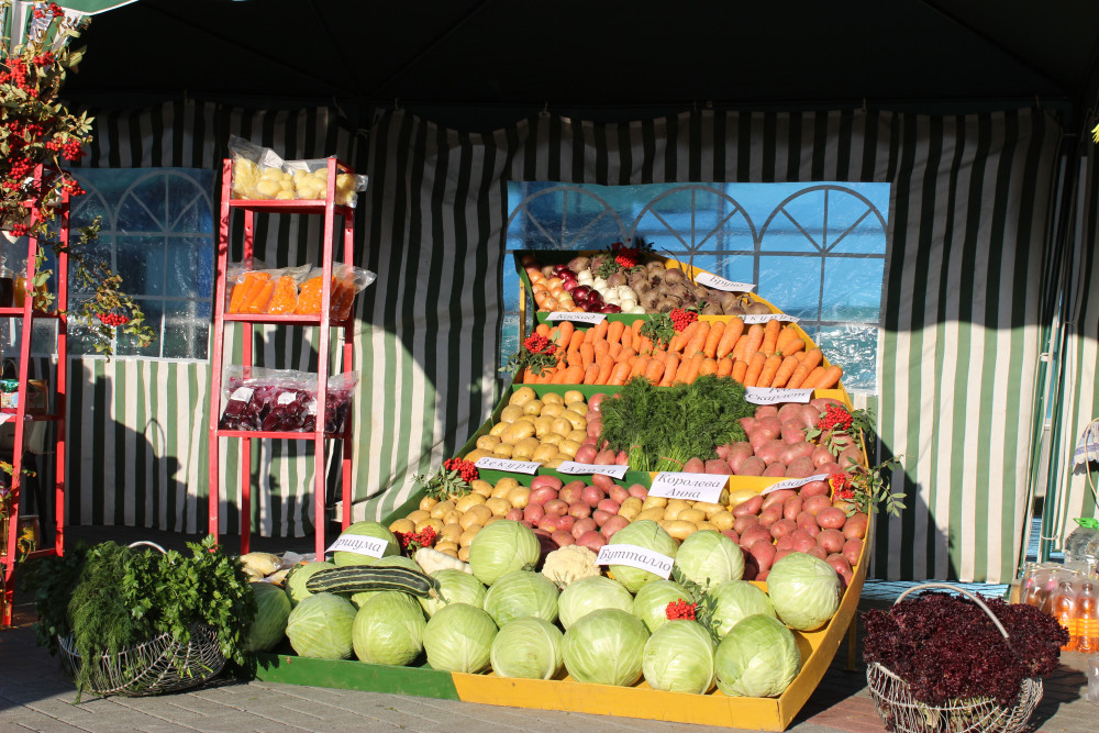 Красивыми рядами расположился на аргаяшском роге изобилия картофель элитных сортов. К уже полюбившимся покупателям сортам Рэд Скарлет, Розара, Королева Анна в этом году добавились новые Зекура и Ароза. Крупный отборный картофель не только радует глаз, но и отлично хранится, на вкус тоже хорош. "Борщевой набор", в который входят морковь, свекла, капуста, лук-репка, представлен на выставке продукцией КФХ М.Камалова, фермерских хозяйств семьи Абсалямовых, АО "Совхоз Акбашевский". Впервые в этом году на выставке представлен листовой салат, выращенный КФХ И. Абсалямова. Раис Габдуллин привез на выставку овощи в вакуумной обработке, уже готовые к употреблению. Рядом расположились ряды хлебобулочных и кондитерских изделий аргаяшского хлебокомбината. Районный потребительский союз привез на выставку консервированные овощные полуфабрикаты, соки, газированные напитки, торты, разнообразную выпечку.