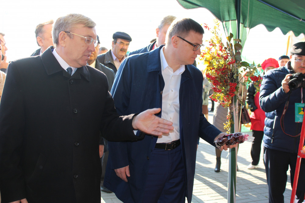 Посетил экспозицию Аргаяшского района губернатор региона Алексей Текслер. Глава района Исрафиль Валишин рассказал Алексею Леонидовичу о продукции, выращиваемой аграриями района, о перспективах дальнейшего развития сельскохозяйственной отрасли. Директор ООО "Риком" Раис Габдуллин познакомил губернатора области с тонкостями технологии по переработке овощей, реализуемой его предприятием. А директор "Совхоз Акбашевский" Нургали Сафаров рассказал главе региона о ходе строительства нового животноводческого комплекса, который строится вблизи д. Левашева.