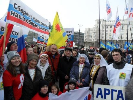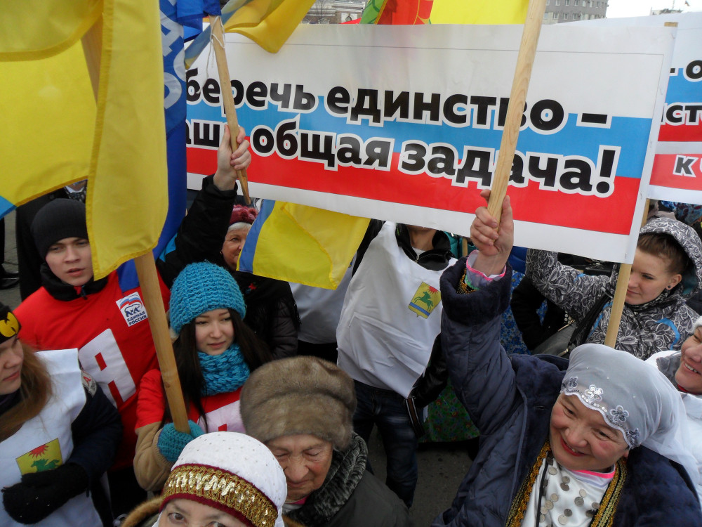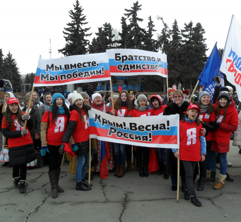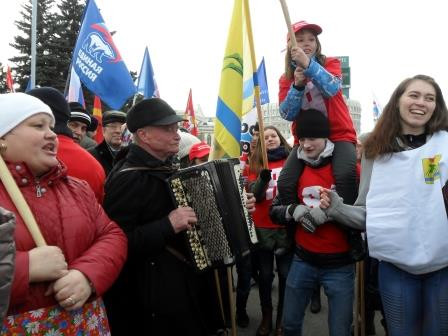 Несколько тысяч южноуральцев собрались сегодня, 18 марта, на площади Революции на митинг-концерт, посвященный второй годовщине присоединения Крымского полуострова к Российской Федерации. Делегация от Аргаяшского муниципального района состояла из 60 человек: глава Аргаяшского муниципального района Исрафиль Валишин, заместитель главы района по социальной политике Луиза Юсупова, сотрудники районного Дома Культуры, администрации и других ведомств, учителя и учащиеся, активисты общественной молодежной организации "Молодая Гвардия Единая Россия", башкирский народный ансамбль "Гузалем". Символики муниицпальных районов и организаций раскрасили площадь. Плакаты и флаги с надписями "Крым.Весна.Россия", "Горжусь страной", "18 марта-одна страна, одна история" - объединяли участников мероприятия. Со сцены звучали добрые песни в исполнении известных коллективов. Приветсвенные слова сказал первый заместитель председателя областного совета движения "За возрождение Урала" Владимир Литвинов, выступили официальные лица области. После окончания митинга участникам предложили горячий чай и кашу из полевой кухни.