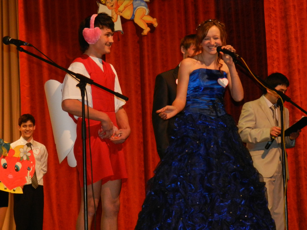 На одной сцене собрались четыре пары влюбленных. Ребята хорошо подготовились - на суд зрителей и жюри были представлены и видеоролики, и творческие номера - знакомство с парой. Все конкурсы еще раз показали, какая у нас молодежь талантливая!
