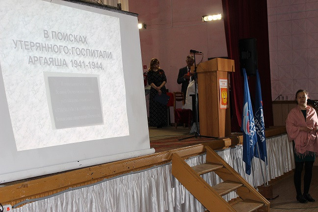 Руководитель объединения школьников «Юный краевед» Центра детского творчества с. Аргаяш А.А. Ершова рассказала о проводимой ребятами работе по изучению истории эвакогоспиталя Аргаяша.