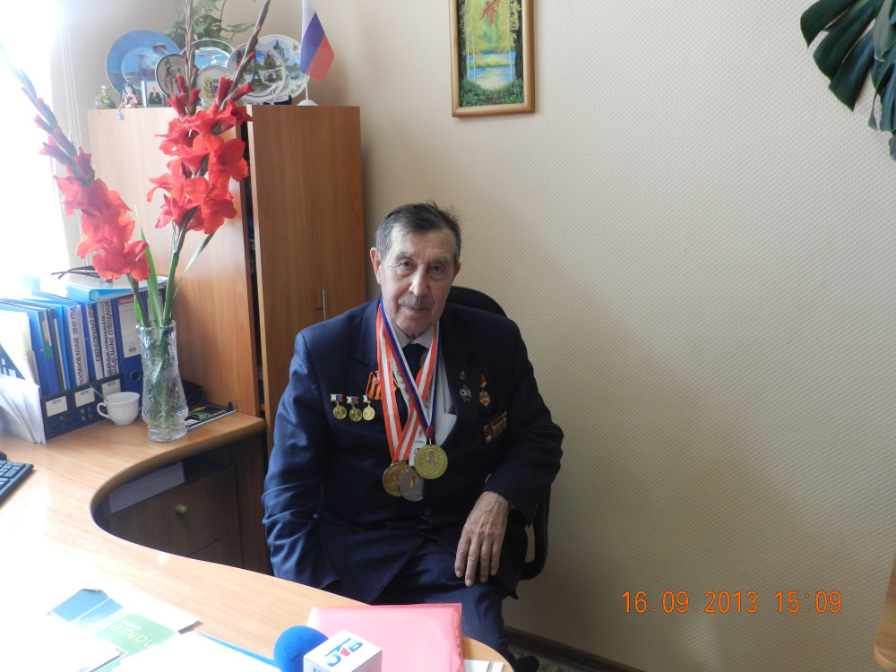 Перед нами сидел стройный мужчина на вид 60 лет, ветеран Великой Отечественной войны, ветеран Вооруженных сил СССР, полковник в отставке, прослуживший в вооруженных силах 35 лет, ветеран подразделения особого риска, принимавший участие в ликвидации последствий ядерной аварии на химкомбинате "Маяк" (ныне город Озерск). Это Зубов Василий Петрович, ветеран спорта, 70 лет на помосте, в одной весовой категории в полулегком весе выступал в молодости и по сей день по тяжелой атлетике. Им установлено 99 рекордов России, больше его никто не устанавливал. Это Василий Алексеевич, двухкратный олимпийский чемпион, у него 83 рекорда и Трофимов Мартин, у него 86 рекордов.