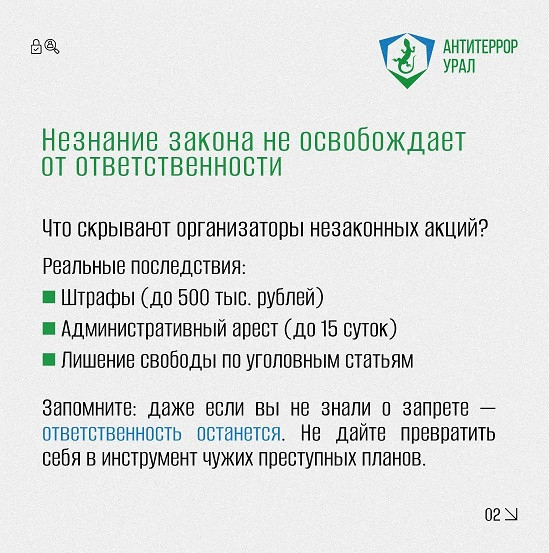«Антитеррор Урал» предупреждает: незнание закона не освобождает от ответственности.