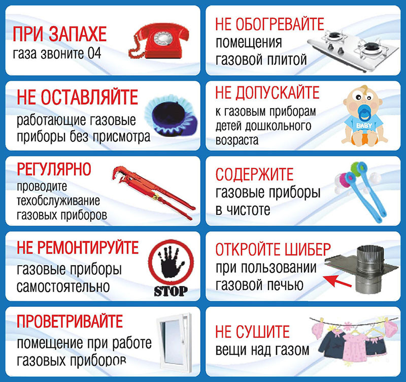 Для безопасного использования газа в быту необходимо учитывать его природные свойства и соблюдать следующие правила: