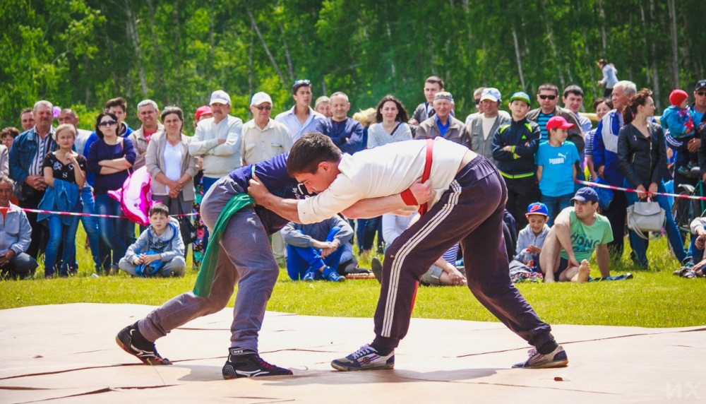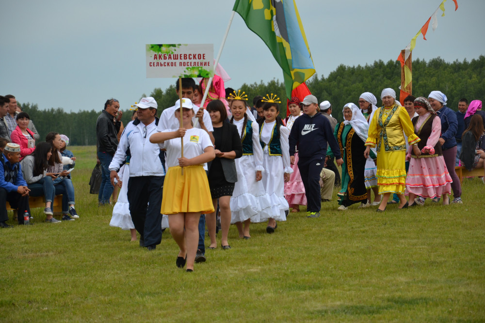 Ясный и солнечный день благоприятствовал хорошему настроению. Вся «Норкинская роща» блистала яркими красками до вечера. Разнообразные надувные батуты, детские карусели и аттракционы, игры и развлечения для взрослых. После активного отдыха все могли сытно пообедать, посмотреть концертные программы, которые проходили на двух сценах или поучаствовать в спортивных состязаниях. Например, интересный финал состоялся в борьбе на поясах «курэш». За звание абсолютного чемпиона на борцовских матах встретились Зинур Гайсин и Раниль Махмутов – оба из деревни Бажикаева. Сыграв все схватки «вничью», главный приз (упитанного барана) мужчины пожертвовали мечети села Аргаяш. Множество зрителей привлекает лазание по шесту, установленном в самом центре праздничной поляны. В этом нелегком развлечении лучшим стал Зинур Кучуков из села Кулуево. Пройтись по качающемуся буму туда и обратно казалось бы легко, но задача усложняется тем, что придя к концу бума, ловкачу нужно отвязать барана и увести его с собой. Даян Абрахманов лучше всех сохранил равновесие и забрал барана. Девушки тоже пробовали свои силы. Отдельной категорией они соревновались в тягании гири, где Анжела Табрисова из села Акбашево стала победительницей. В боях на мешках в категории до 18 лет победил Василий Бачурин, а в старшей категории – Р.Байрамгалин.