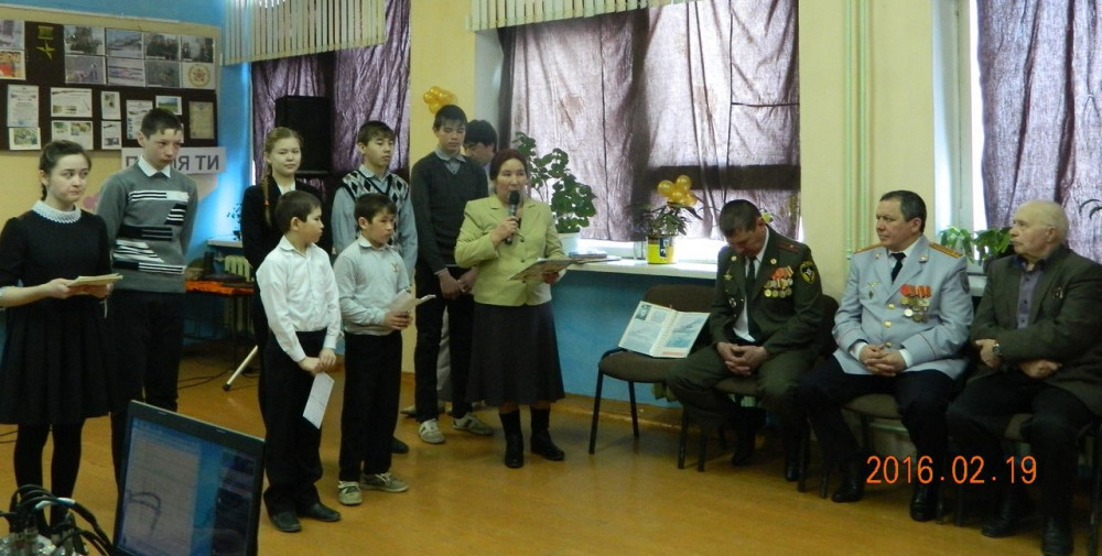 Во время мероприятия были продемонстрированы видеофрагменты об Афганской и Чеченской войне, приведены исторические факты. Постепенно раскрывая тему, выступали и гости и учащиеся школы. Учащиеся школы, члены краеведческого объединения под руководством Ижбулатовой Мухтарама Шагитовна подготовили сообщения о своих земляках. Все, призванные служить в Афганистан с кузяшевской земли вернулись живыми на родину. В мирное время двое умерли.