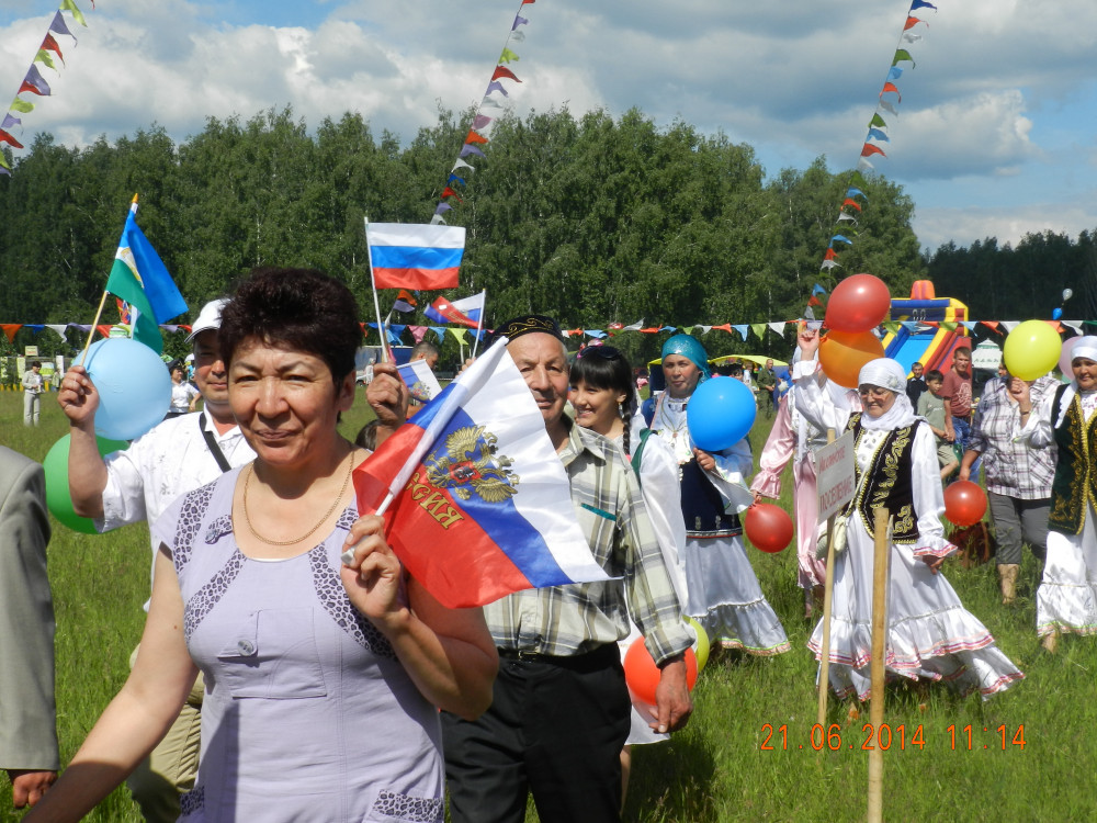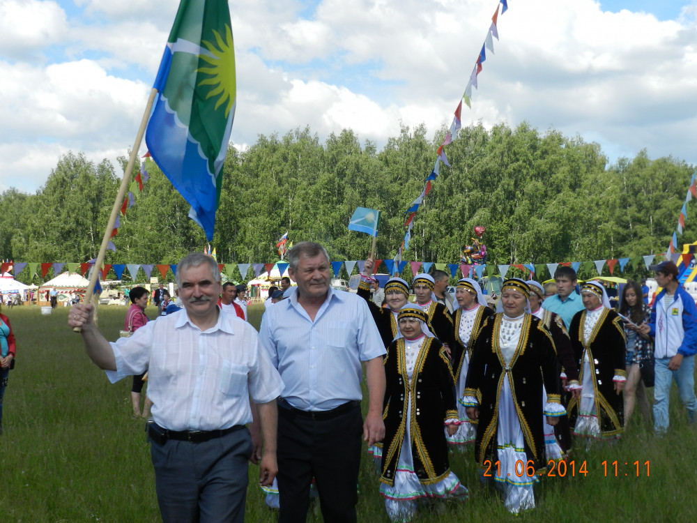 Праздник начался в 11 утра торжественным парадом представителей сельских поселений и музыкально-хореографической композицией «Здравствуй, Сабантуй!». С главной сцены звучали приветственные слова официальных лиц и почетных гостей, прибывших на праздник.