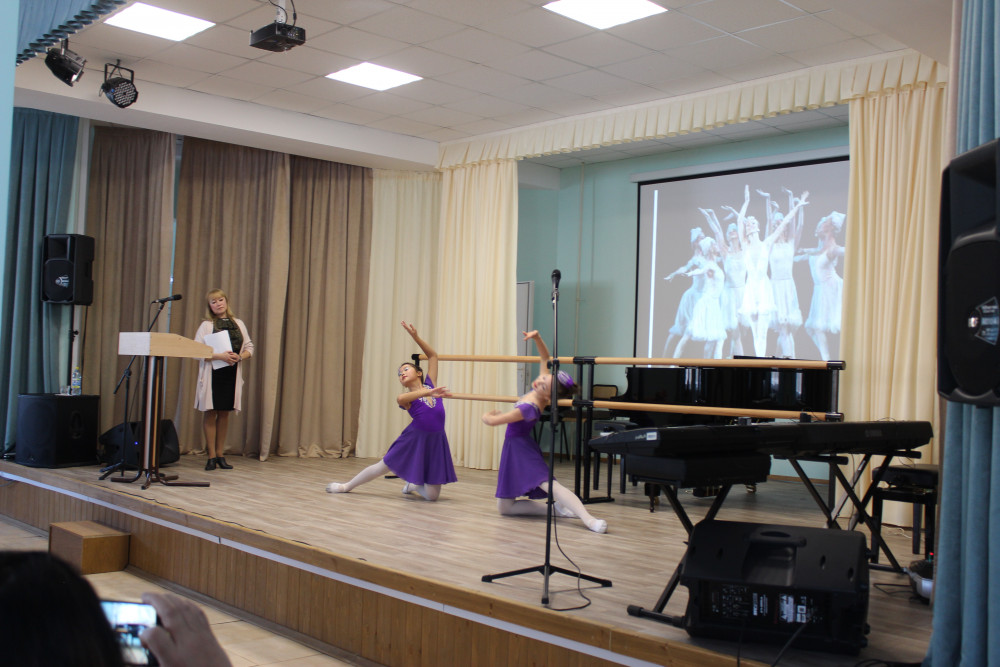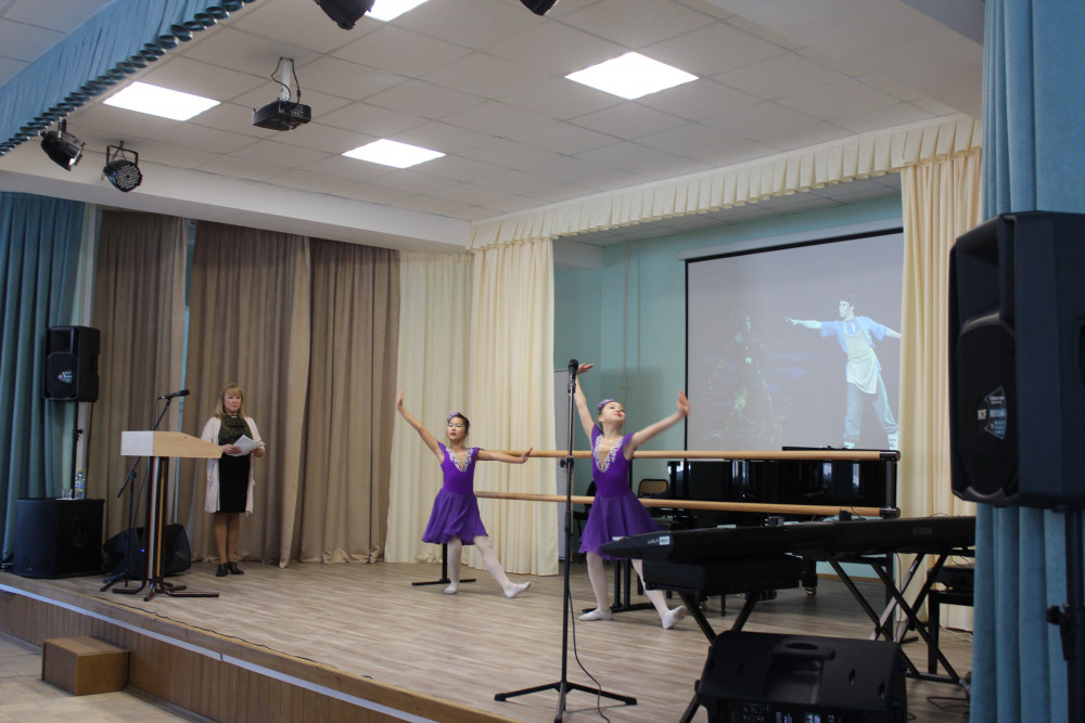 Учащиеся старших классов хореографического отделения Аделина Токоева и Дана Баимова артистично, живо и одухотворенно показали выполнение ряда базовых элементов экзерсиса в образах персонажей балета «Шурале». Девочки мастерски передали в танце внутренние переживания героев, при этом были особенно внимательны к деталям: жестам, позам, мимике, особой пластике рук. Дети великолепно проявили себя в роли артистов балета.
