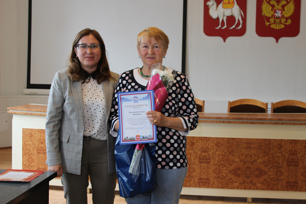 Исполнительный секретарь местного отделения партии «Единая Россия» вручила благодарственные письма секретаря местного отделения партии начальнику управления социальной защиты населения Люции Хакимовой, социальным работникам Галине Исламовой, Римме Галикаевой.