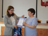 Помощник депутата Государственной Думы РФ Олега Колесникова Анна Агеева вручила поздравительный адрес специалисту отдела льгот и социальных гарантий Зарине Магасумовой.