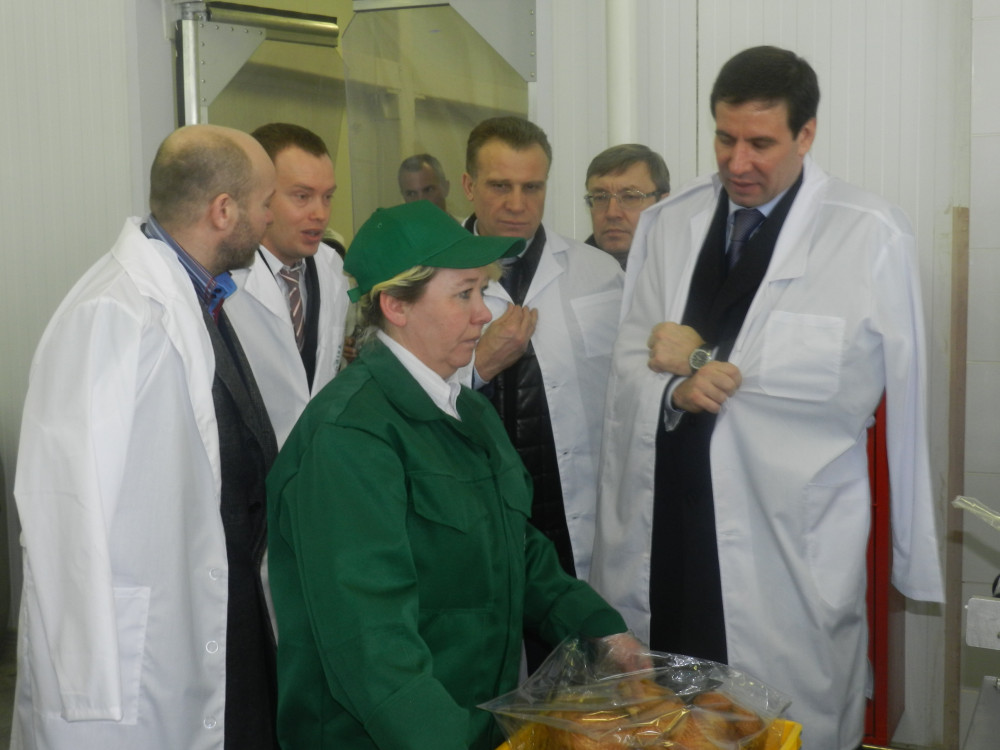 Губернатор Челябинской области Михаил Юревич посетил с рабочим визитом запущенное несколько месяцев назад в Аргаяшском районе мясоперерабатывающее предприятие «Здоровая Ферма Деликатесы».