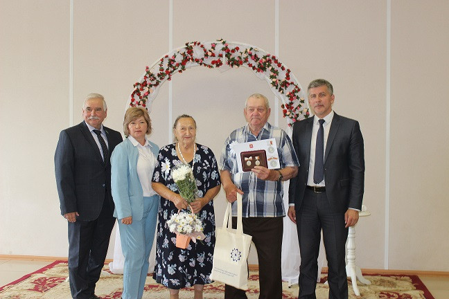 По уже сложившейся традиции супружеские пары района были награждены памятным знаком «За семейные ценности». Муниципальный знак учрежден в 2022 году по инициативе главы района Игоря Ишимова и ежегодно вручается супругам, прожившим в браке более 50 лет. Награждение памятным знаком проводится один раз в год ко Дню семьи, любви и верности.