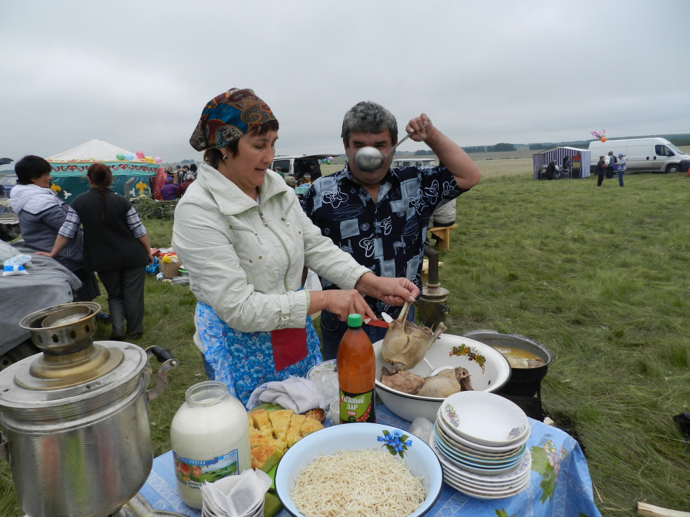 По-семейному раскинули юрты, торговые палатки. В казанах на костре готовили вкуснейший бишбармак и плов, пыхтели разогретые самовары. Пили ароматный чай с домашним молоком, − по однажды заведенному обычаю алкоголь на таких праздниках не приветствуется.