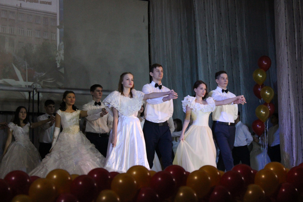 Зрительный зал был полностью заполнен. Открывали юбилейный вечер учителя и выпускники Аргаяшской средней общеобразовательной школы № 2 (АСОШ № 2). Первыми на сцену вышли учащиеся старших классов. Девушки в белых пышных платьях, парни в строгих костюмах. Вальсируя, ребята разделились на два ряда, между которыми на сцену выходили учителя. Каждого педагога встречали аплодисментами.