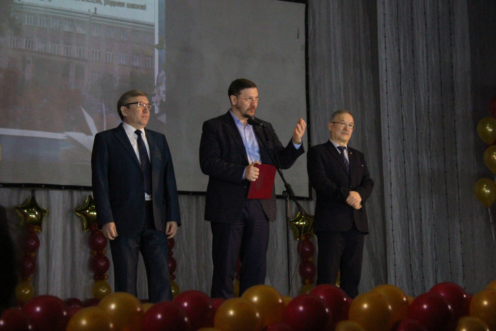 Для поздравления первыми на сцену пригласили заместителя председателя Законодательного Собрания Челябинской области Константина Юрьевича Захарова, главу Аргаяшского муниципального района Исрафиля Макиновича Валишина и начальника Управления образования Аргаяшского района Ильяса Тимербулатовича Сафиуллина. Каждый сказал слова благодарности учителям, пожелал спехов в учебе нынешним ученикам и процветания школе, вручили ценные подарки. Выдающимся учителям были вручены почетные грамоты, благодарственные письма. Далее последовала концертная программа и поздравления официальных лиц района и коллег – педагогов школы № 1, которые подготовили видеопоздравление в виде песни.