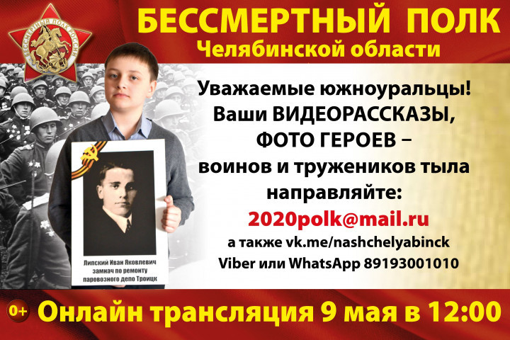 Мы объединимся на крупнейшей региональной интернет-площадке в социальных сетях и запустим 9 Мая трансляцию «Бессмертный полк онлайн». Наши рассказы о героях из Челябинской области услышит весь мир!» - отмечают организаторы акции.
