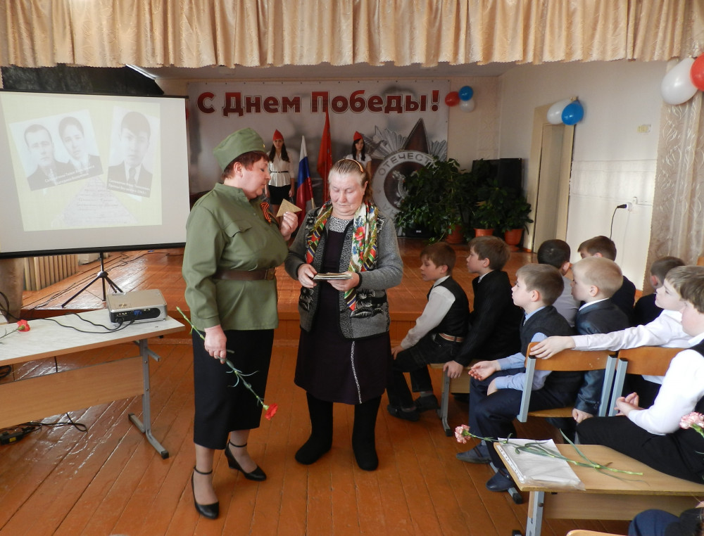Теплая атмосфера зала, слезы на глазах, воспоминания далекого военного детства. Жительница села Лидия Тихоновна Малеева рассказала об истории своего отца, Тихона Яковлевича Саломатина, погибшего на войне. Все 70 с лишним лет в их семье бережно хранятся письма с фронта и похоронки на отца и брата, − пожелтевшие от времени треугольники бумаги.